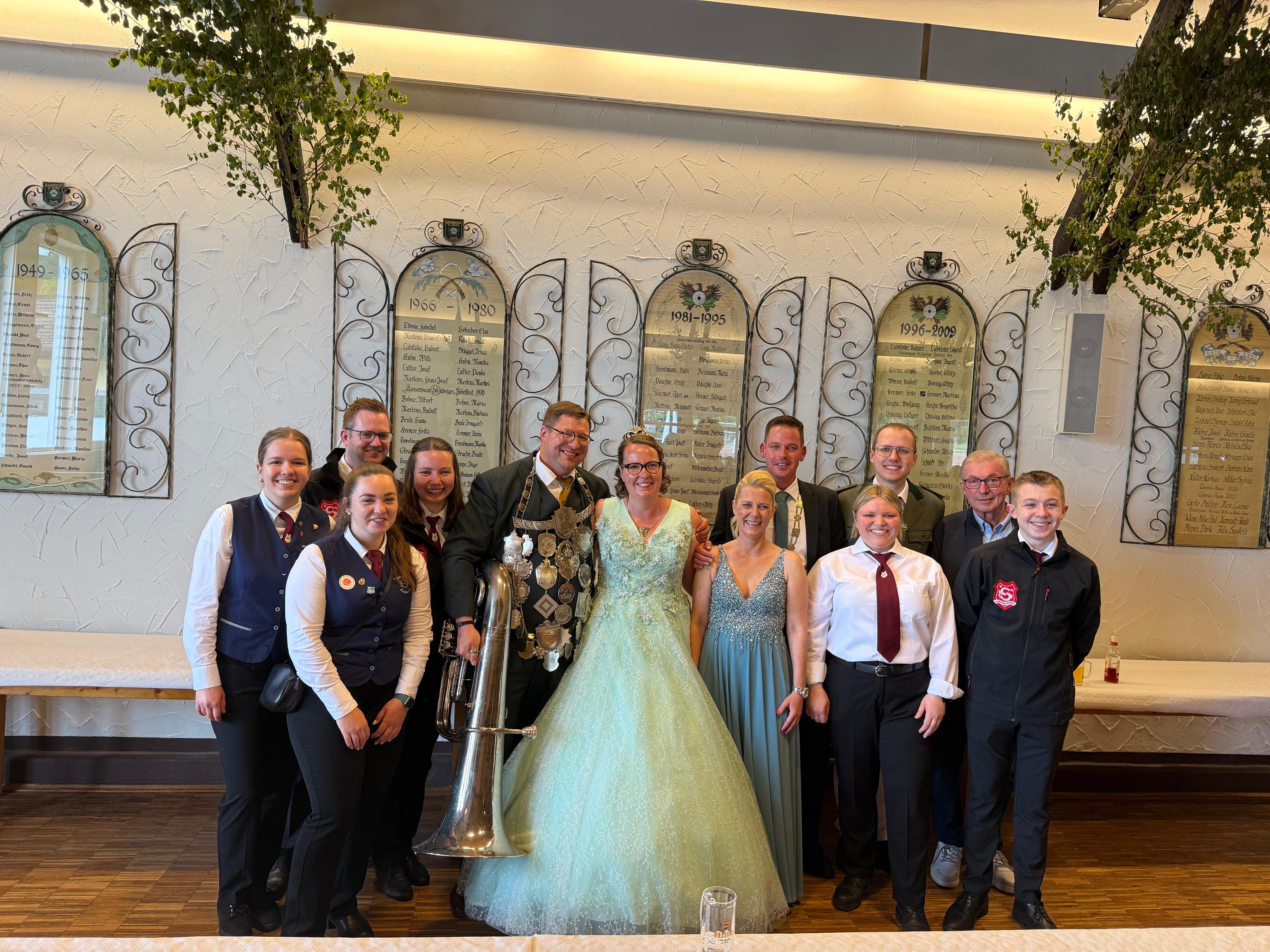 Unser Tubist Michael Loof ist neuer Schützenkönig in Olpe! Mit dem 158. Schuss befreite er den Vogel aus seinem Kugelfang und setzte sich somit treffsicher gegen seine Mitstreiter durch. Zu seiner Königin erkor der neue Schützenkönig der St. Georg Schützen Ehefrau Vanessa, die nun zusammen mit ihm ein Jahr regiert. Mit dem neuen Olper Schützenpaar freuen sich die Kinder: Martha, 12 Jahre, Konrad, 10 Jahre und Joris, 7 Jahre.